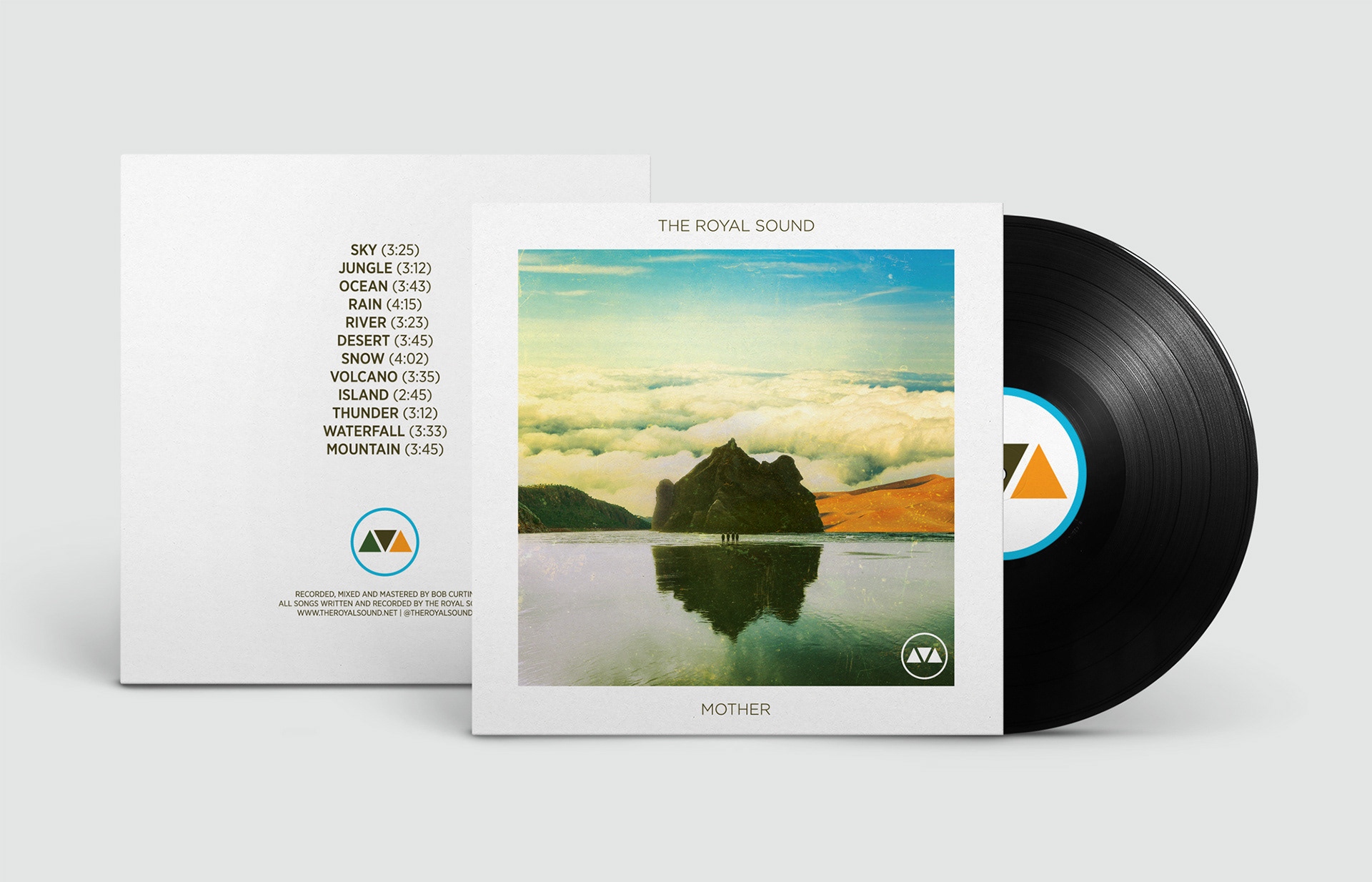 THE ROYAL SOUND: Created the album artwork for The Royal Sound's third album entitled 'Mother'. Concept: Transform the band's geometric logo into a photo realistic landscape. Three physical mountain forms replace the three triangles of the logo. The middle island and its reflection combine to form a "Mother Nature" figure.